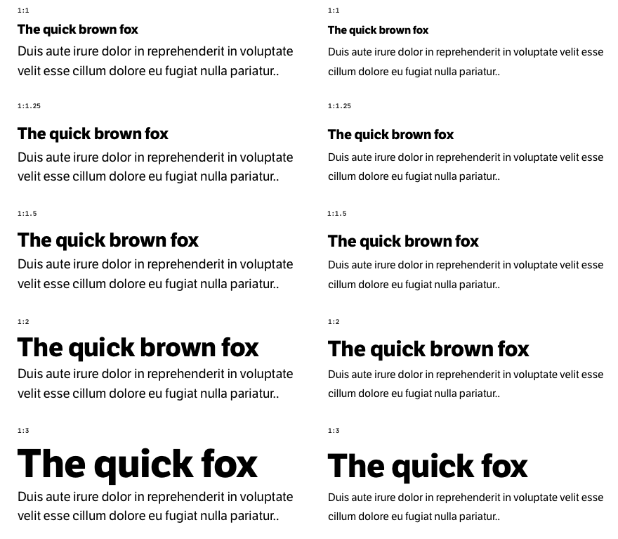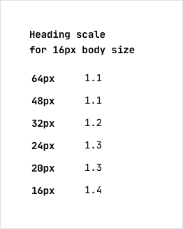 When creating a design, it’s convenient to create tables like the one in the example above by first selecting the headings manually and checking how they work with the text. Then you can already pick the exact values of the heading sizes using the modular scale we discussed in the Principles chapter.