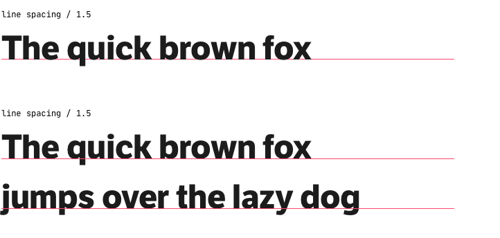 Always check headings by making them on two lines. It helps to find the proper line spacing and avoid mistakes. Many interfaces are adaptive, working on different screens, and at some point, a two-word one-line heading may well become a two-line heading.