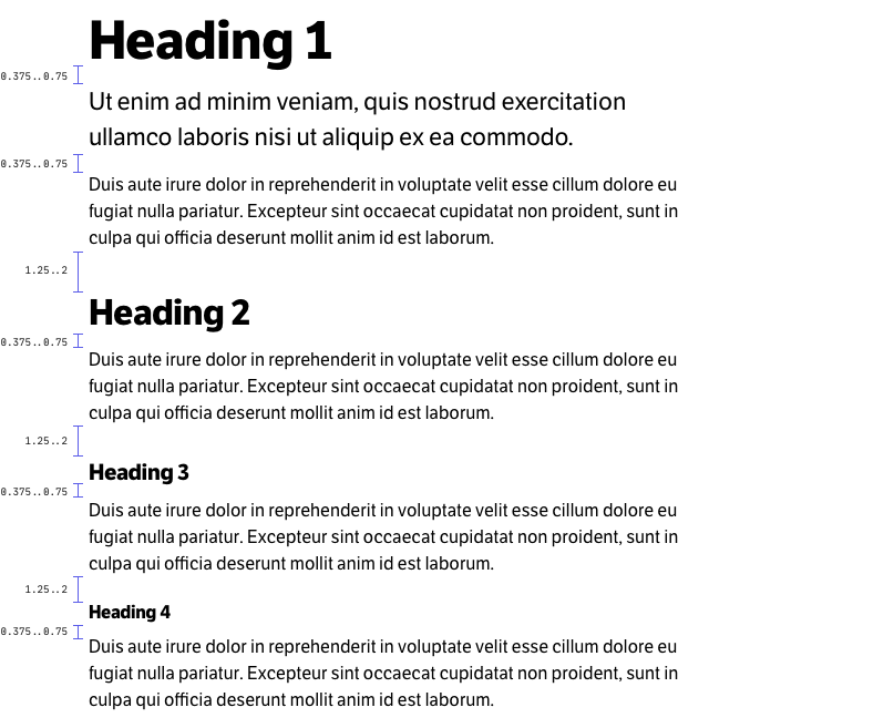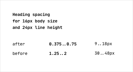 Approximate distances after and before headings.